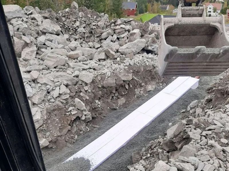 Dette er fra en jobb hvor vi gravde og satte ned brannkum, og la 160mm vann, 125mm kloakk og 250mm overvann.