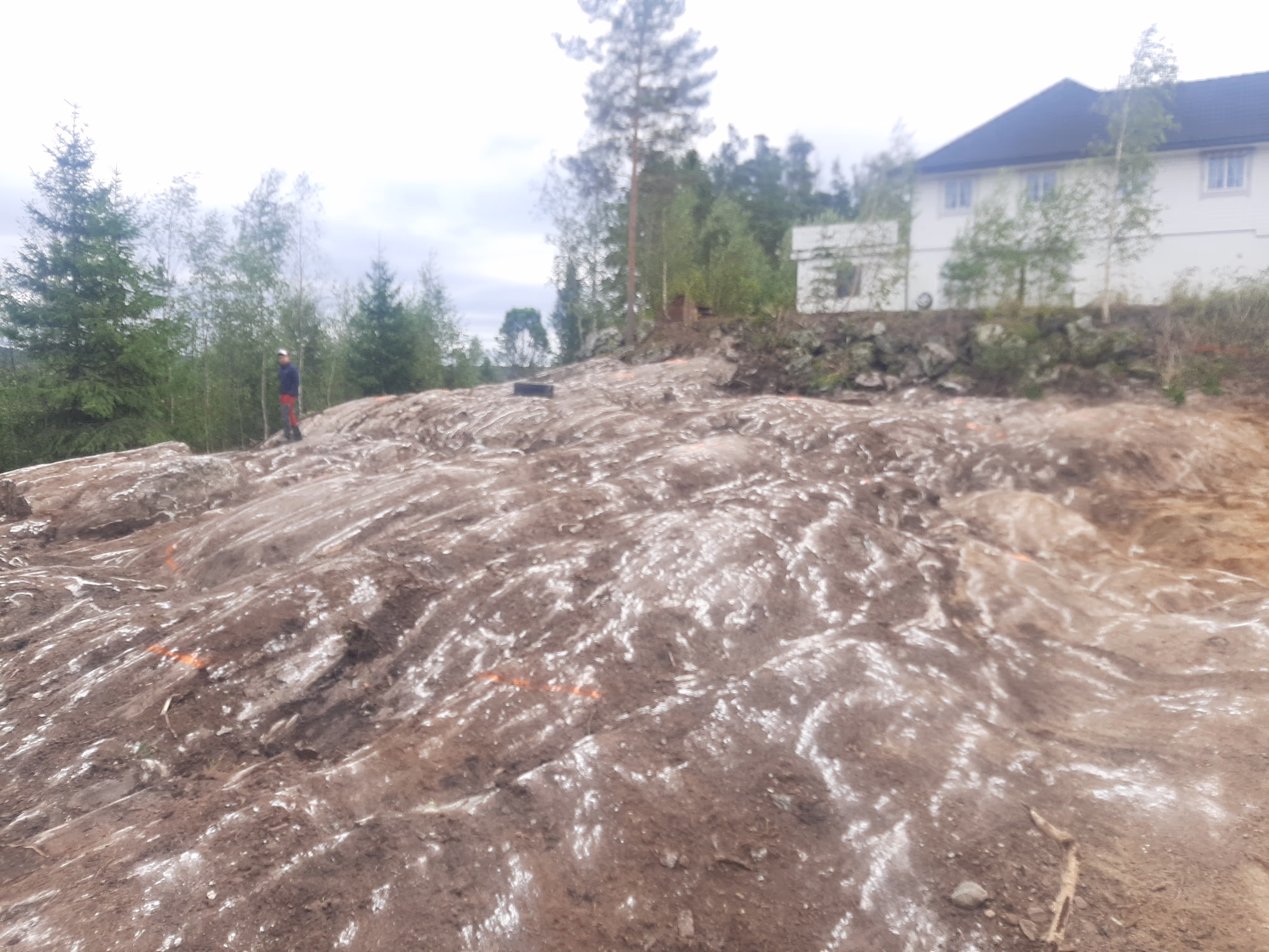 Her har vi sømboret for en kunde, for å ta ned rystelsene inn mot huset. Vi har også pigget ned resterende fjeld.